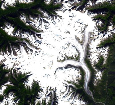 Since 1984, satellite monitoring has documented the retreat of the Klinaklini Glacier by more than 5 kilometers, forming a new lake at its terminus.