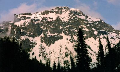 Mount Mystery rises to 7,639 feet in elevation within Olympic National Park, featuring steep slopes and the smaller Mystery Glacier on its eastern face.
