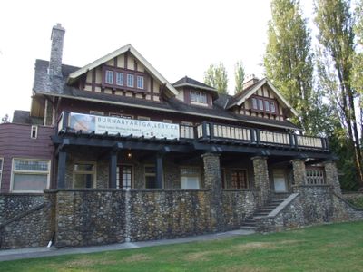 The Burnaby Art Gallery occupies Fairacres Mansion, a historic building featuring Edwardian Arts and Crafts style with imported English tiles and oak mantelpiece.