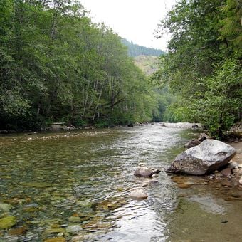 The river system supports specific spawning locations for Chinook and coho salmon populations within the Mount Baker-Snoqualmie National Forest boundaries.