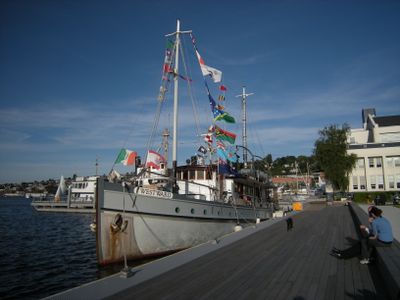 The motor yacht demonstrates the early 20th-century maritime traditions and the advancement of recreational boating along the Pacific Northwest coastline.