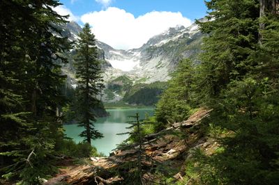 Blanca Lake stands out within the wilderness boundaries with its distinct turquoise green water, surrounded by western redcedar and Douglas fir forests.