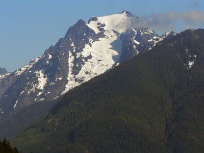 Whitehorse Mountain features a steep north face that rises 1,830 meters within just 2.9 kilometers from its base near Darrington.