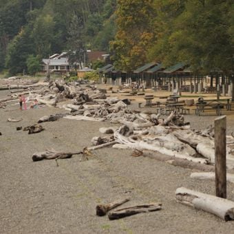 The 428-acre waterfront park includes multiple walking trails, camping sites, and a boat launch along the shoreline of Puget Sound.