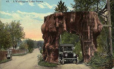 Giant Cedar Stump, Roadside tree stump attraction in Snohomish County, United States.
