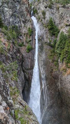 Sulphide Creek Falls descends through multiple tiers over a vertical drop of 2,182 feet, forming one of the tallest waterfalls in North America.