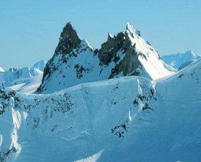 Mount Fee stands at 2,162 meters in elevation, featuring two distinct summits divided by a U-shaped crevice in the Pacific Ranges of British Columbia.