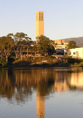 The 175-foot concrete and steel Storke Tower features a carillon system with 61 bells that ring across the university campus every hour.