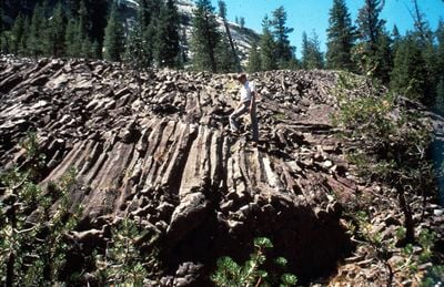 Little Devils Postpile, Columnar basalt formation in Yosemite National Park, California.