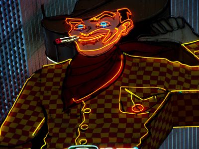 Vegas Vic contains over 1,000 feet of neon tubing and features specialized mechanisms that enable his arm movement and voice recordings.