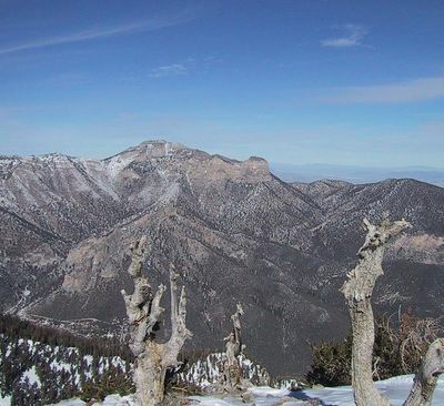 Mummy Mountain reaches an elevation of 11,533 feet within the Mount Charleston Wilderness of Humboldt-Toiyabe National Forest.