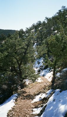 Native American granaries and dwelling remnants line sections of the trail, revealing the historical presence of indigenous communities in this section of the canyon.