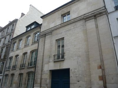 The Couvent des Minimes features remnants of its original façade at 12 rue des Minimes, north of Place des Vosges in central Paris.
