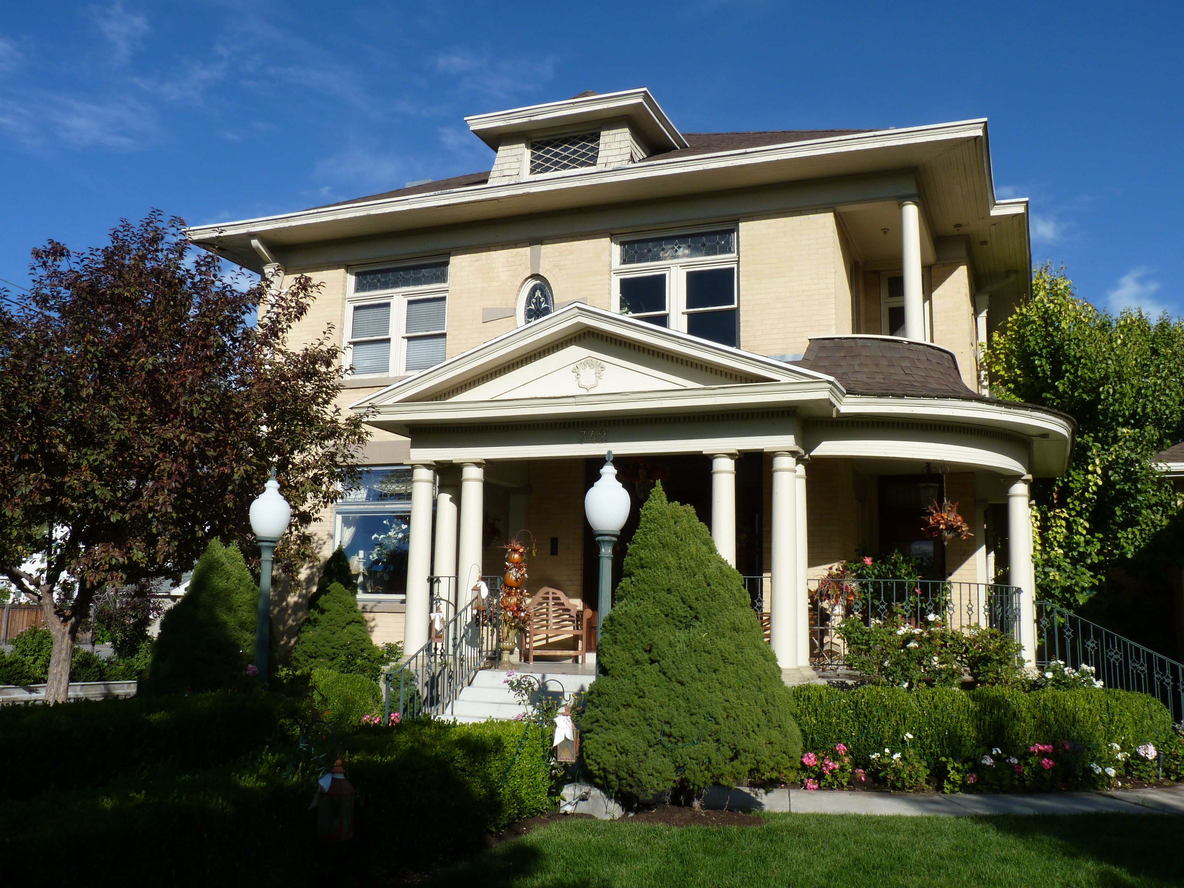 The Thomas N. Taylor House displays classical detailing with irregular massing across its structure at 342 North 500 West in Provo, Utah.