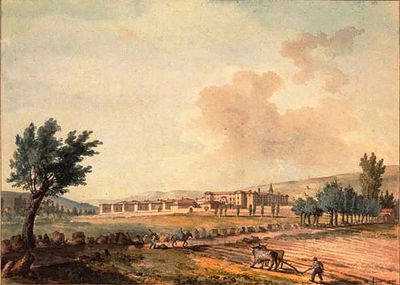 The monastery transformed through multiple functions over centuries, serving as a paper mill, civil internment center, military hospital, and professional training center.
