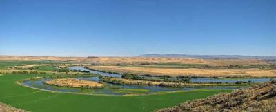 Three Island Crossing State Park spans 613 acres along the Snake River, featuring original wagon ruts from the Oregon Trail migration period.