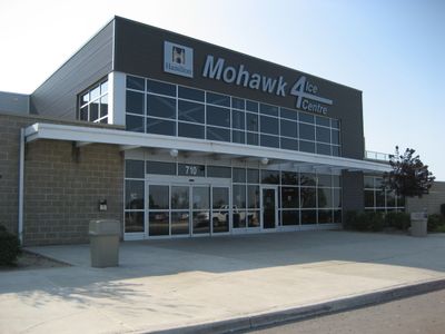 The Mohawk 4 Ice Centre spans 136,000 square feet and contains four NHL-sized ice rinks, twenty-four changing rooms, and food service facilities on two levels.