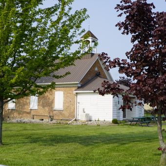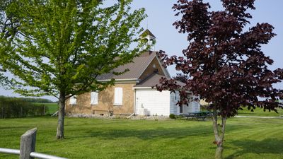 The former schoolhouse contains exhibits that display teaching methods and materials from early 20th century rural education in Ontario.