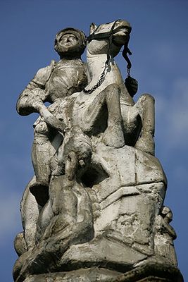 Fountain of St. George, decorative fountain with statue in the city of Fribourg, Switzerland