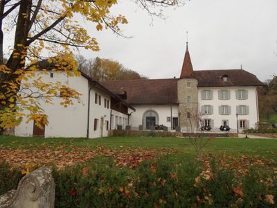 Salavaux château with portal and fountain, Gebäude in Salavaux im Kanton Waadt, Schweiz