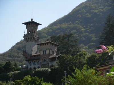 Castello Cattaneo stands on a hilltop location in the Ticino region, featuring distinct architectural elements designed by Gino Coppedè.