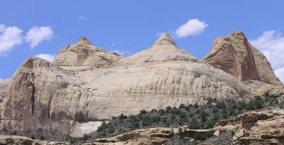 The Navajo Dome rises from the Colorado Plateau, displaying light pink to white coloration due to the presence of iron oxides in its composition.