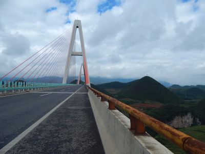 The Malinghe River Bridge is a cable-stayed structure completed in 2011 that rises 241 meters above the Malinghe River and features a main span of 360 meters, connecting transportation routes across the deep river gorge in the mountainous terrain of Guizhou Province.