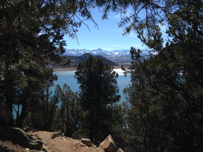 The 3,301-acre park contains a reservoir stretching along the Uncompahgre River Valley, with mountains rising from its shores and extensive trail networks.
