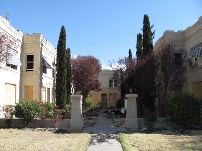 The Castle Apartments featured twenty units arranged in a U-shape layout surrounding a central courtyard at the corner of 15th Street and Central Avenue.