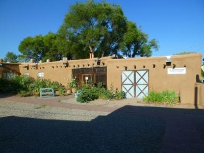 The Ernest L. Blumenschein House features eleven rooms and a central courtyard, constructed with adobe walls in Spanish Pueblo architectural style.