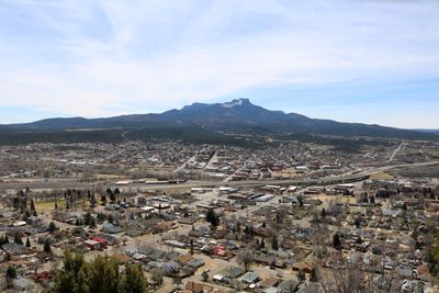 Trinidad extends across the Purgatoire River valley at 1832 meters elevation, featuring mountain views and a grid pattern of streets in the downtown district.