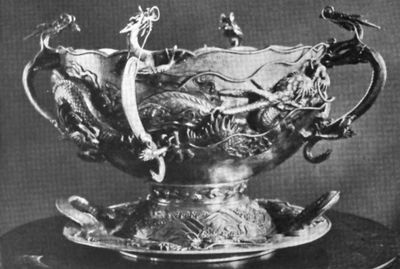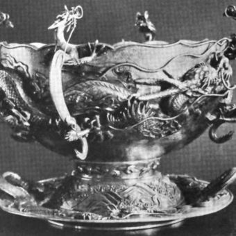 In 1902, Arthur & Bond Company created this silver bowl from bullion discovered in a Chinese mint after the Battle of Tientsin during the Boxer Rebellion.