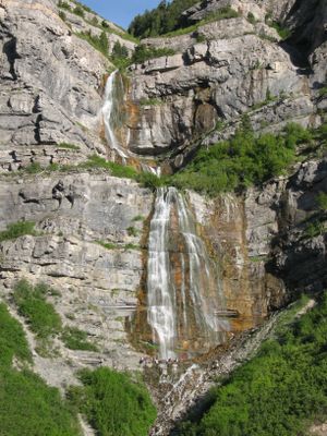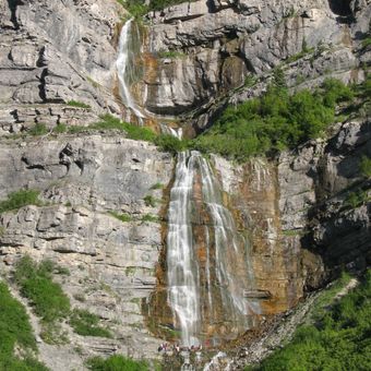 The waterfall creates a constant misty spray pattern that resembles a white veil, leading to its current name after previous names Luna Falls and Iris Falls.