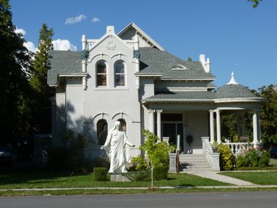 A 9-foot marble sculpture of Jesus stands on the property, which appeared in the independent film production 'Falling' by filmmaker Richard Dutcher.