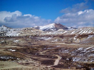Wilkins Peak rises to 2332 meters in elevation between the cities of Green River and Rock Springs, featuring multiple radio and television transmission towers.