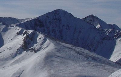 Crystal Peak rises to 13,860 feet in the Tenmile Range, featuring steep slopes and exposed rock formations along its hiking paths.