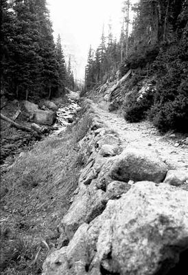 Fern Lake Trail, Historic hiking trail in Rocky Mountain National Park, Colorado, US.