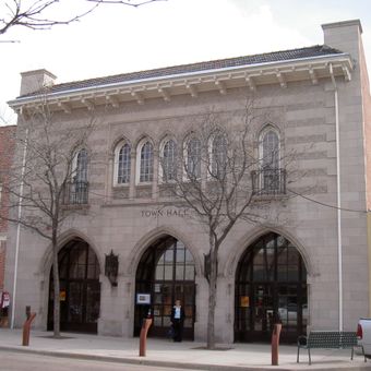 Built in 1920 as a civic center by architect Jacques Benedict, the building contained council chambers, a fire station, and a second-floor auditorium until 1977.