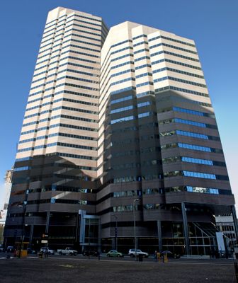 The building contains multiple floors of office spaces and corporate facilities, with direct access to downtown Denver's business and transportation networks.