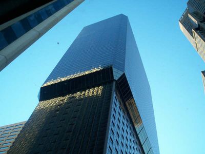 The building represents the evolution of Denver's commercial architecture, combining office spaces with a 613-room hotel in the lower twenty floors.