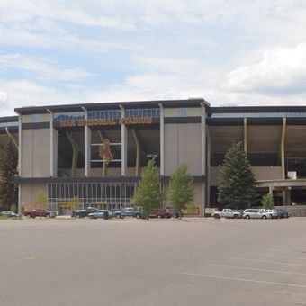 War Memorial Stadium stands on the University of Wyoming campus with a capacity of 29,181 seats and features two large video scoreboards at both ends of the field.