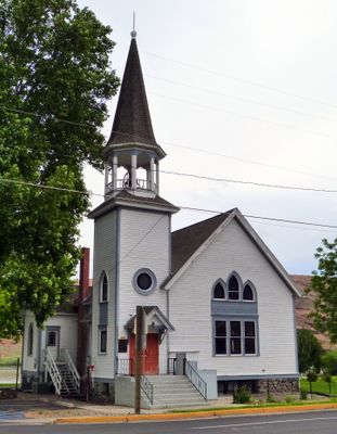 The Full Gospel Church features traditional architectural elements characteristic of early 20th-century religious buildings, with detailed woodwork and large windows throughout the structure.