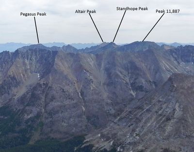 Standhope Peak rises to 11,878 feet in elevation, making it the fourth highest mountain in the Pioneer Mountains range of central Idaho.