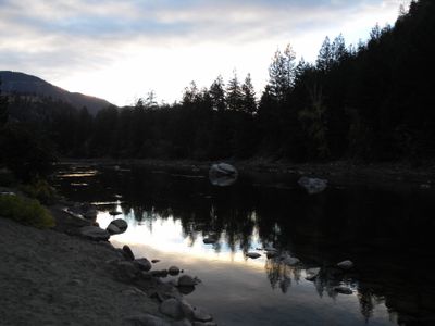 The Stemwinder Provincial Park extends over 3.6 hectares along the Similkameen River, featuring pine trees and rocky shorelines for camping and fishing activities.