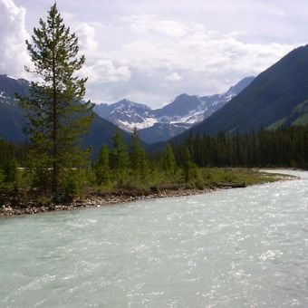The river begins at Vermilion Pass and joins several tributaries including Simpson River, Tokumm Creek, and Verendrye Creek before reaching the Kootenay River.