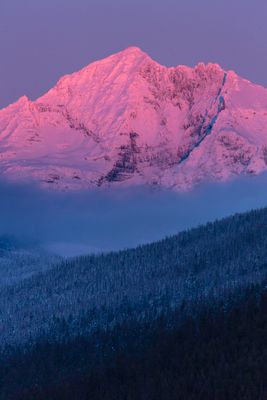 Gunsight Mountain is a summit in the Lewis Range within Glacier National Park that rises to about 9,260 feet with two distinctive peaks. The northeast face is covered by Sperry Glacier, which is a defining feature of the mountain's appearance.