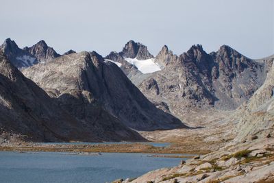 Mount Woodrow Wilson reaches an elevation of 13,502 feet and sits at the intersection of Titcomb Basin, Dinwoody Valley, and Mammoth Glacier cirque.