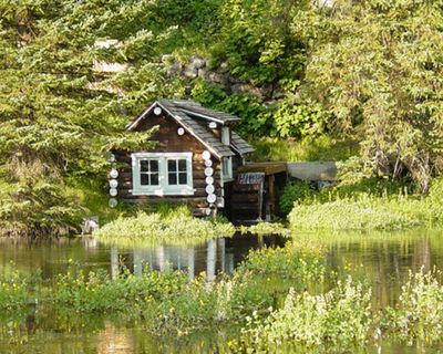 The 20 by 27 feet log bungalow features hand-crafted wooden furniture and sits near the headwaters of Henry's Fork Snake River at Big Springs.