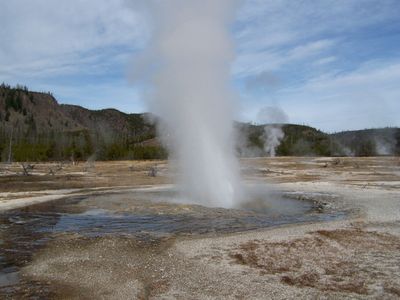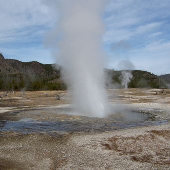Visitors can reach the geyser via the Biscuit Basin Trail from the parking area on Grand Loop Road, with eruptions occurring every 5 to 10 minutes.