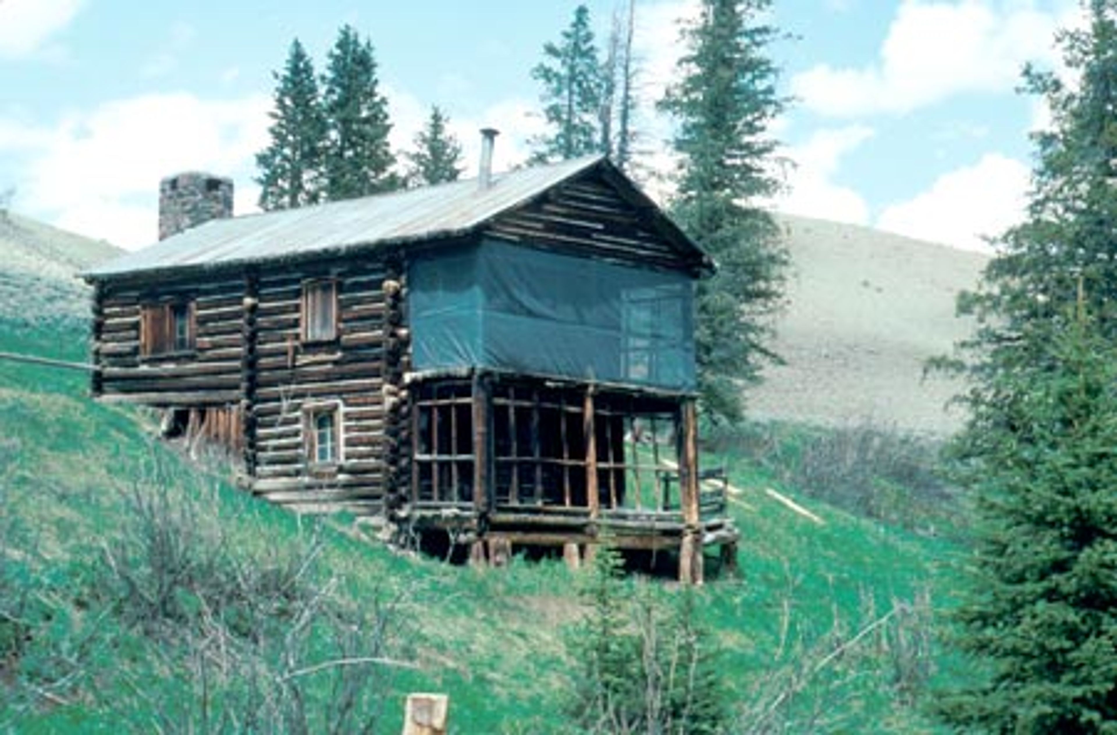 The two-story wooden lodge includes a single room cabin, two log footbridges, a developed spring, and a pole corral in the Absaroka Mountains.